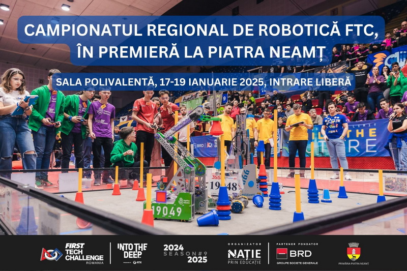 Asociația Nație Prin Educație organizează împreună cu Municipiul Piatra-Neamț prima etapă regională din noul sezon al competiției FIRST Tech Challenge România în perioada 17-19 Ianuarie la Sala Polivalentă din Piatra-Neamț.