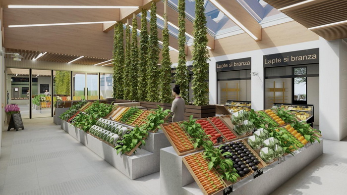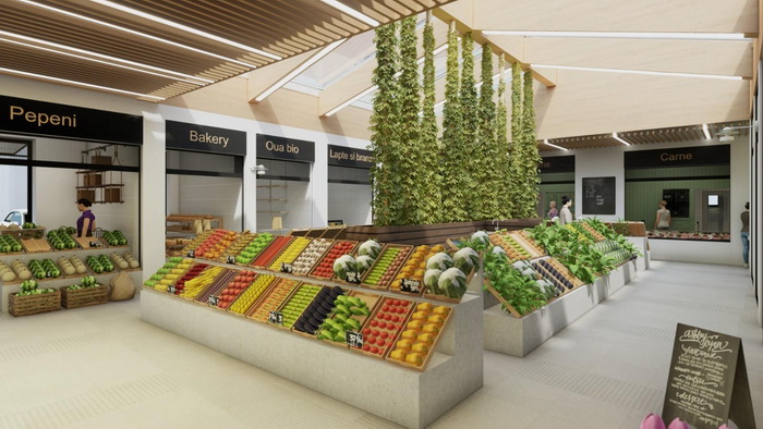 Conform proiectului, clădirea propusă va avea 496 mp construiți și va fi formată dintr-un singur corp organizat pe un singur nivel, zona centrală (50 mp) fiind dedicată comerțului ambulant, deschis cu standuri de fructe si legume. Pe laterale vor fi amplasate standurile cu produse alimentare (ouă, lactate, vinuri, carne, pește, etc.), precum și zonă de luat masa, cafenea, stand panificație, florărie și alte servicii conexe, toate aceste spații însumând o suprafață utilă de 406 mp.