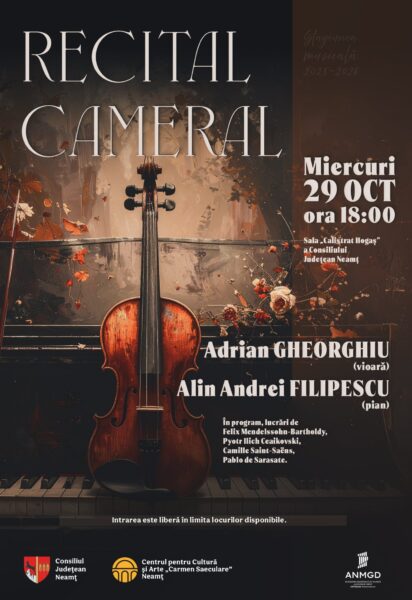 Evenimentul va avea loc miercuri, 29 octombrie 2025, la sala „Calistrat Hogaș” a Consiliului Județean Neamț. Intrarea la acest eveniment muzical este liberă în limita locurilor disponibile.
