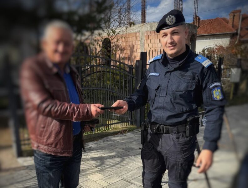Un șofer a oprit în dreptul dispozitivului și l-a ridicat, însă echipajul de jandarmi a intervenit imediat pentru recuperarea bunului.