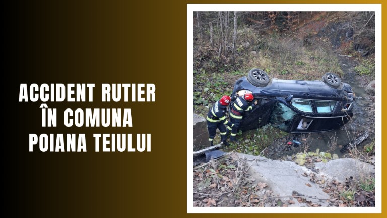 Duminică după-amiază, o mașină în care se aflau patru persoane a ieșit de pe carosabil și a căzut în albia unui pârâu în satul Petru Vodă, comuna Poiana Teiului.