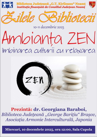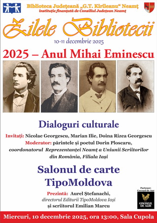 Biblioteca Județeană „G.T. Kirileanu“ Neamț sărbătorește Zilele Bibliotecii în zilele de 10 și 11 decembrie 2025.