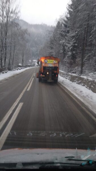 - 1 utilaj tip Unimog cu lamă și răspânditor de material antiderapant;
